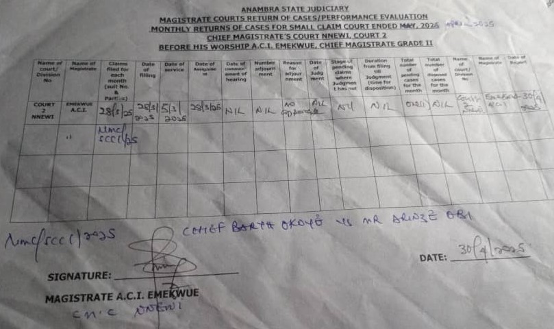 | 9 | ONITSHA COURT 6 | MAY 2025 SCC Returns |